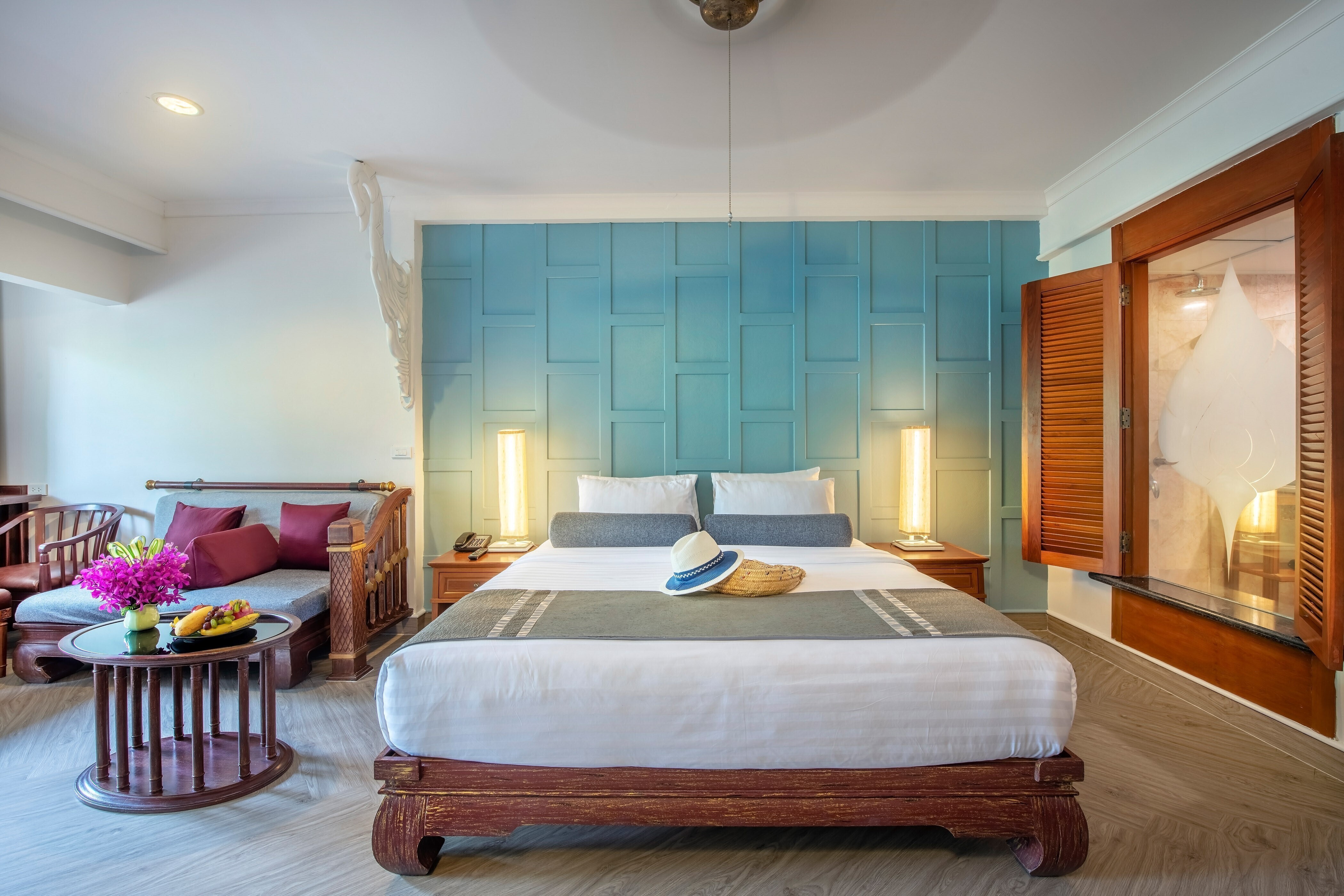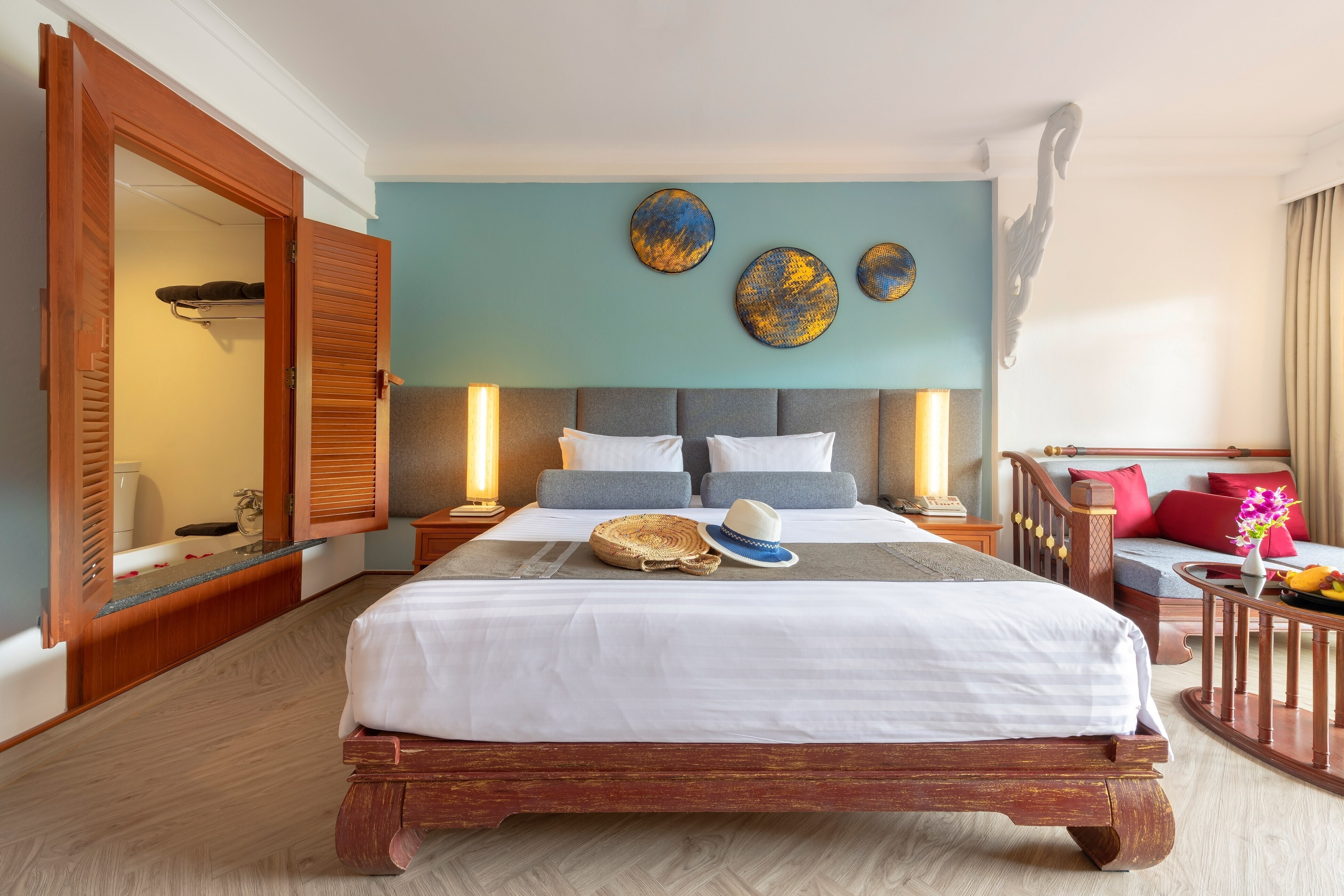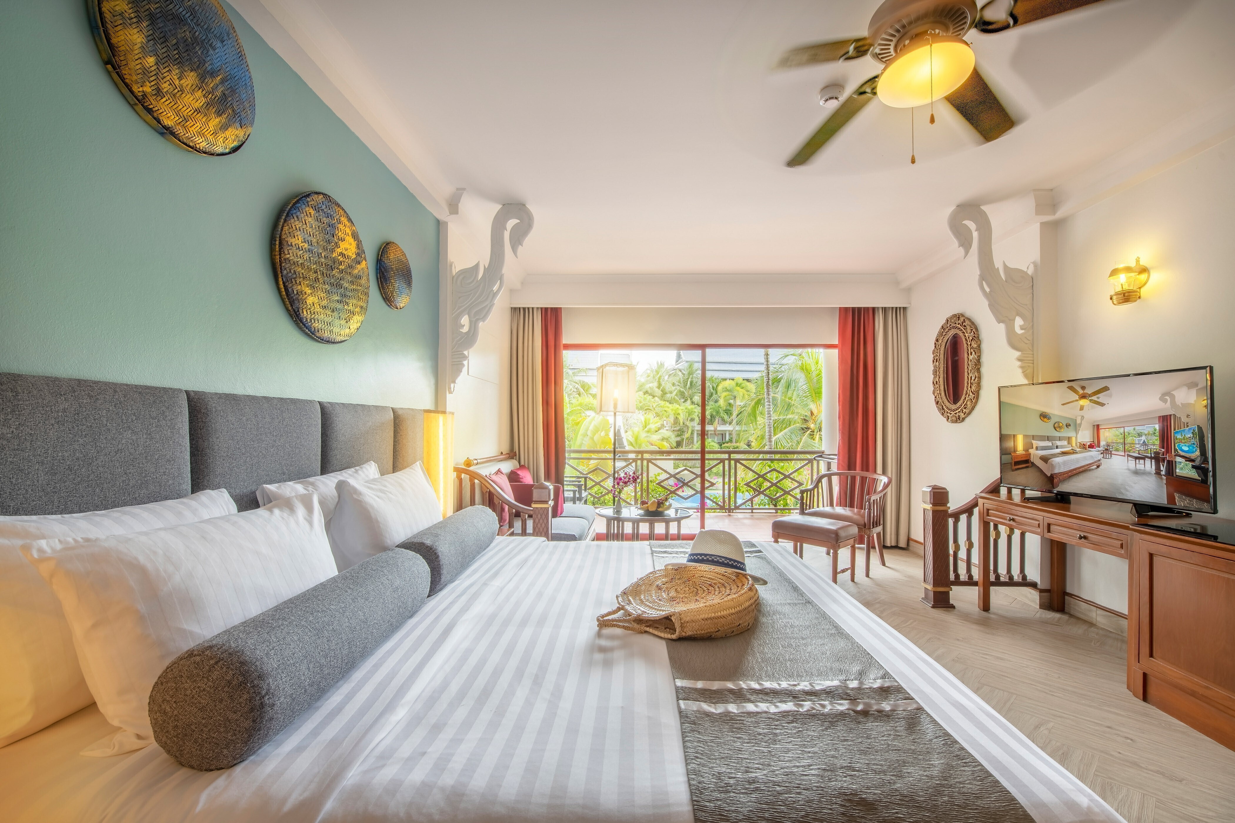 Deluxe Room Подробнее Свернуть - Комментарии74 номера. Площадь 40 кв.м. Однокомнатный номер. Балкон/ терраса. Вид на сад/ на бассейн. 1 двуспальная кровать или 2 односпальные кровати. Дополнительное спальное место - кушетка. Покрытие пола - дерево. Индивидуальный кондиционер. Сейф (бесплатно). ТВ (русских каналов нет). Телефон (платно). Wi-Fi (платно). Room Service (платно). Мини-бар (платно). Чайные/ кофейные принадлежности. Ванна. Душ. Фен. Банные принадлежности (мыло, шампунь, гель для душа). Уборка номера - ежедневно. Смена белья - 2 раза в неделю.