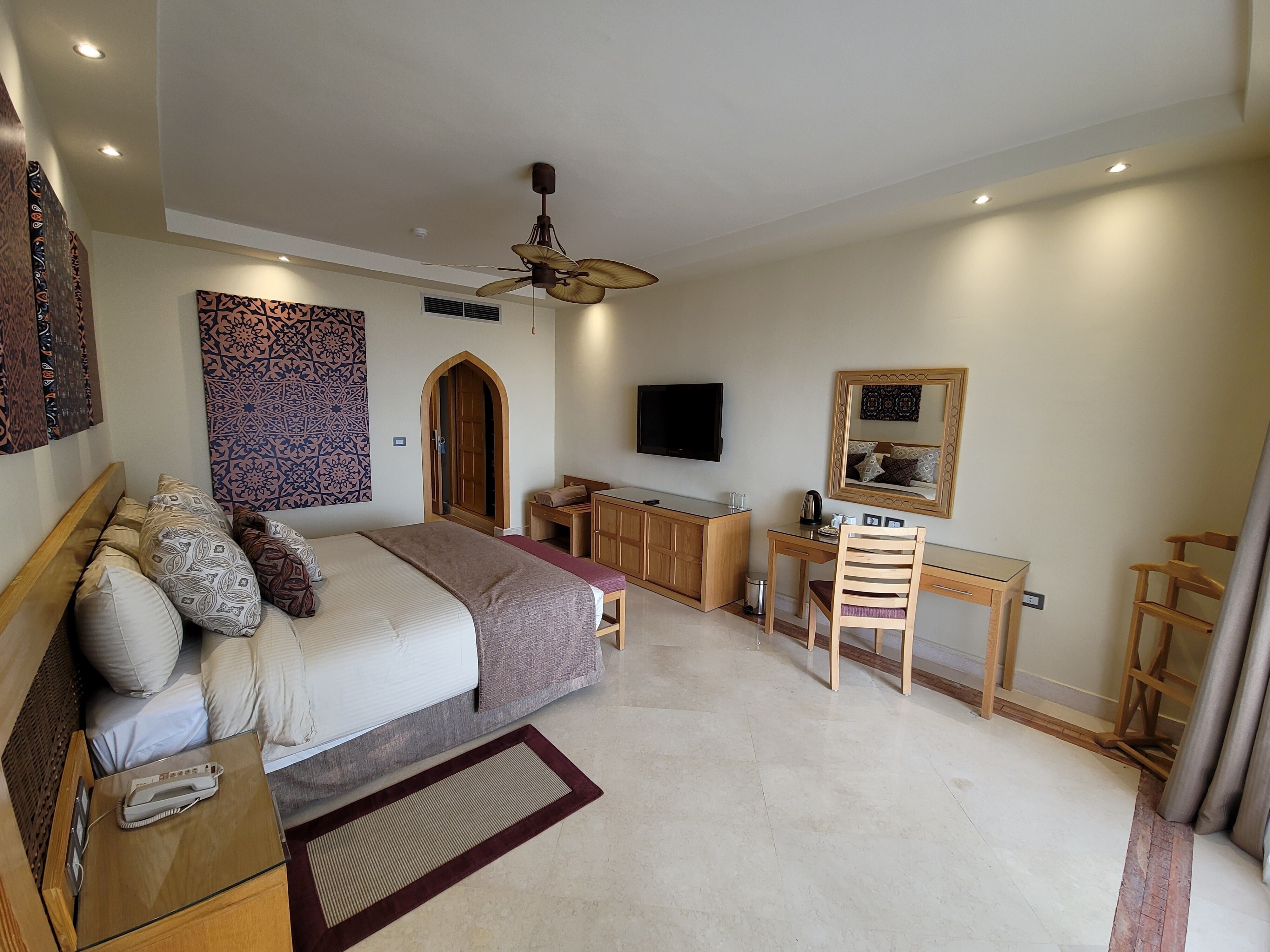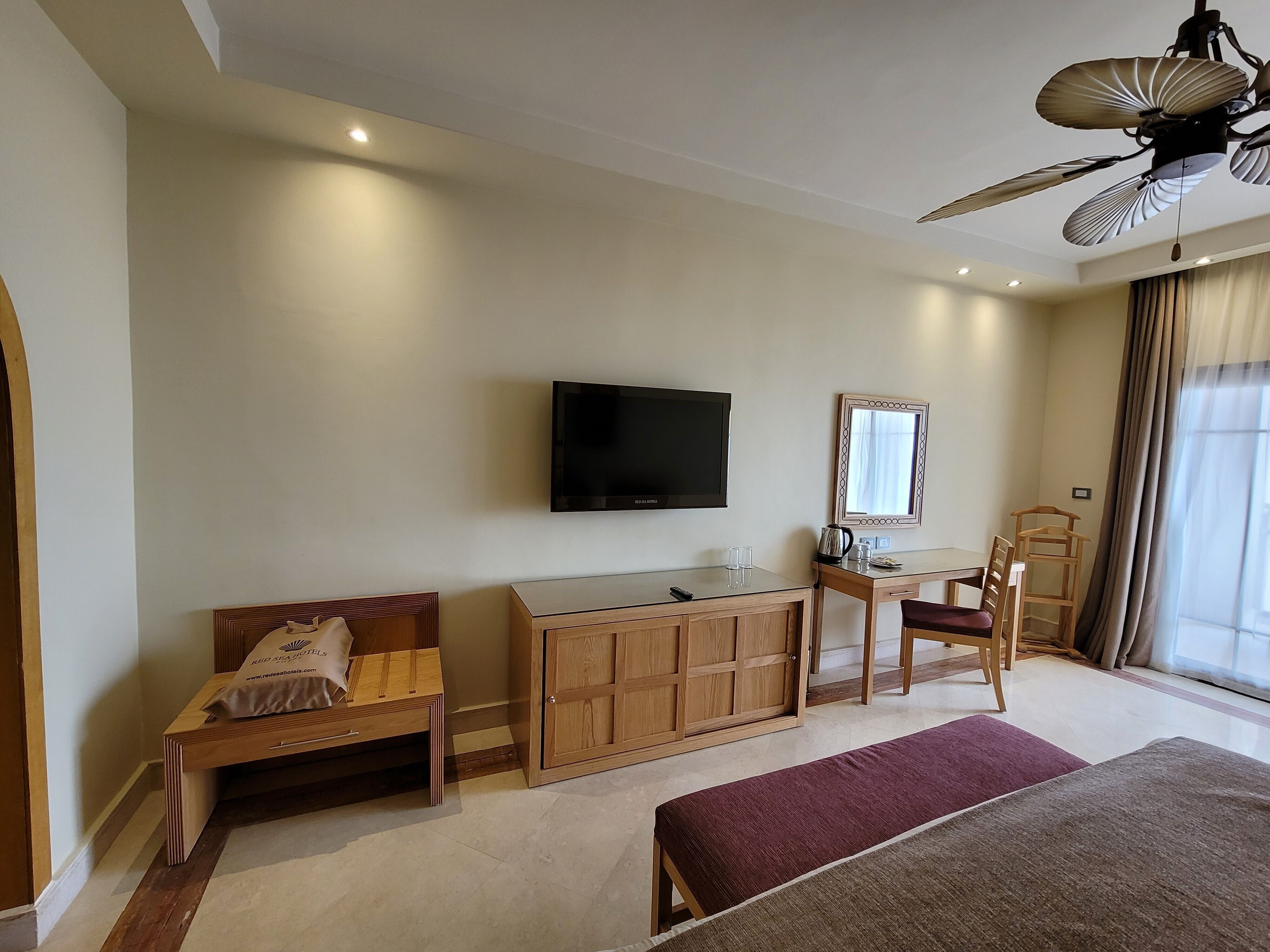 - ceai, cafea, băuturi, apă, whisky, tequila, bere. Toate băuturile alcoolice sunt de producție egipteană. Sistemul funcționează 24 de ore (toate băuturile sunt servite în pahare), vin (alb, roșu, trandafir) doar în timpul prânzului și cinei în restaurantul principal.